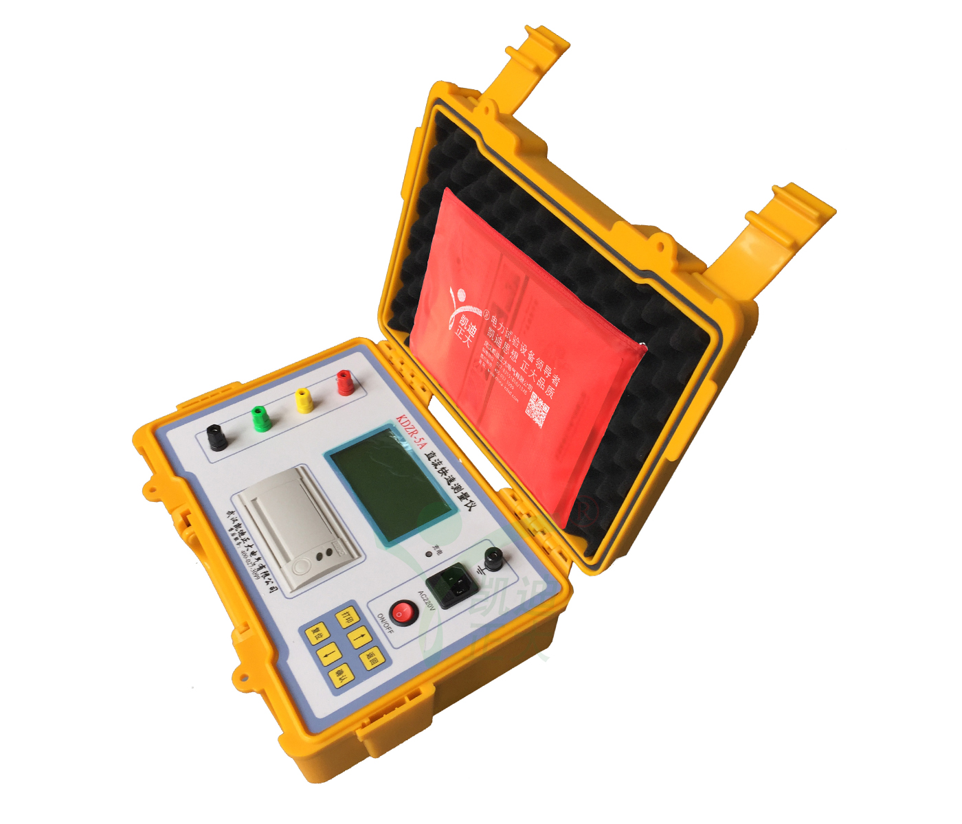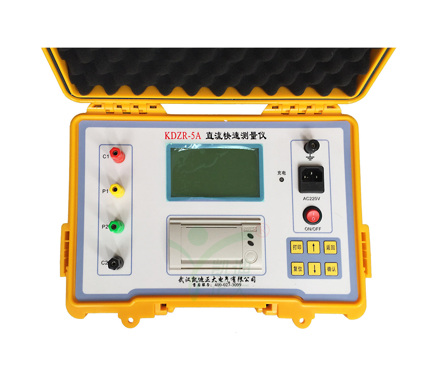 KDZR-5A 变压器直流电阻测试仪界面设计采用微机控制,大屏幕背光汉字液晶屏显示,操作简便、显示清晰人机交互界面友好,测量过程及仪器工作状态提示明确充分,不需操作人员记忆过多的规程;采用电流源线性补偿技术,测试稳定、测量精度高、速度快,提高了测量效率,减轻了操作人员的工作强度。技术上采用“四端”测量,消除引线电阻与接触引起的测量误差。有过压防护功能,能防反电动势冲击。面板式打印机可快速打印测量结果(选用)。体积小、重量轻、携带方便。