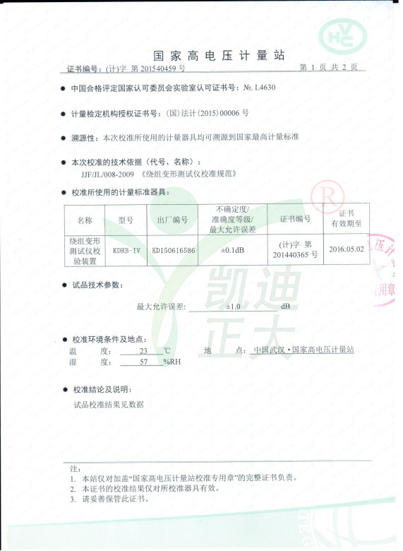 22.该仪器完全满足电力标准DL/T911-2004《电力变压器绕组变形的频率响应分析法》的技术条件。
