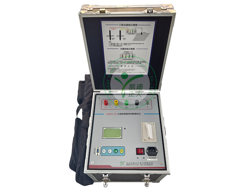 KDWS-5A型大型地网接地电阻测试仪,可测变电站地网(4Ω)、水火电厂、微波站(10Ω)、避雷针(10Ω)多用机型,采用了新型变频交流电源,并采用了微机处理控制和信号处理等措施,很好的解决了测试过程中的抗干扰问题,简化了试验操作过程,提高了测试结果的精度和准确性,大大降低了试验人员的劳动强度和试验成本。