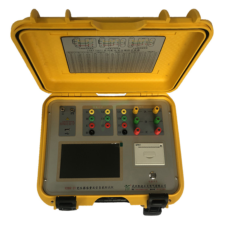 KDBR-IV 变压器容量及空负载测试仪是我公司针对不良电力用户偷逃基本电费、私自增容问题而研发设计的仪器,用于变压器容量、空载、负载等特性参数测量的高精密仪器。本仪器为多功能测量仪器,相当于往常两种测试仪器:即变压器容量测试仪+变压器特性参数测试仪。它可对多种变压器的容量、型式、空载电流、空载损耗、短路(负载)损耗、阻抗电压等一系列工频参数进行精密的测量。