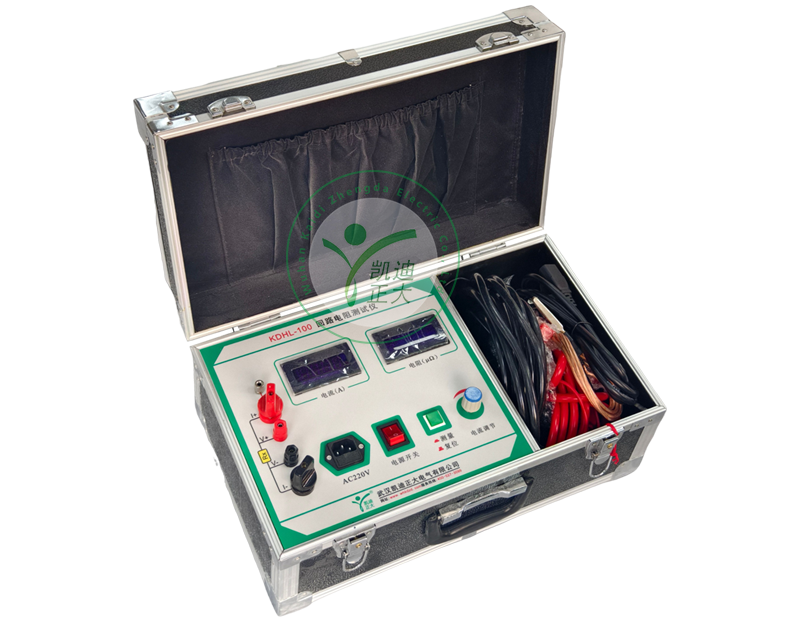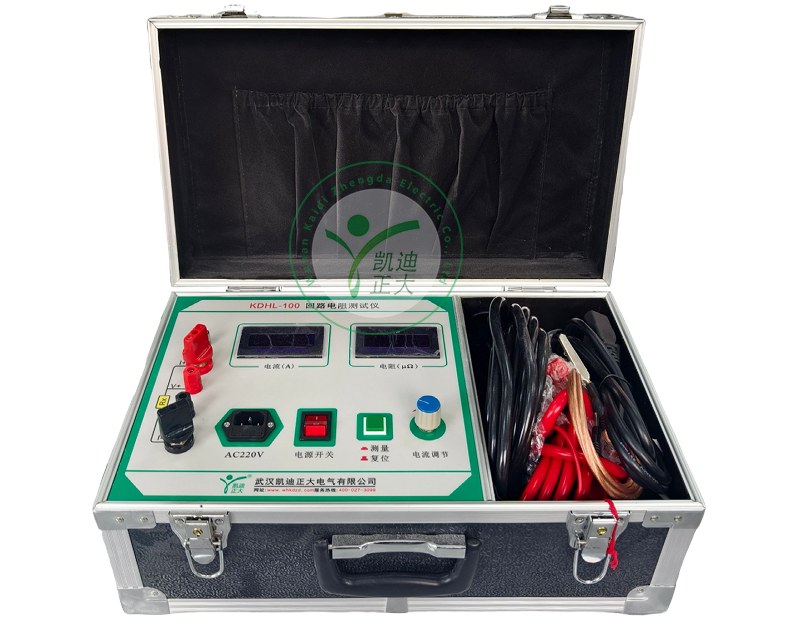KDHL-100回路电阻测试仪是采用数字电路技术和开关电源技术相结合设计而成。它适用于开关控制设备的接触电阻、回路电阻的测量。其测试电流采用国家标准推荐的直流100A。可在电流100A的情况下直接测得回路电阻和接触电阻,并用数字显示出来。该仪器测量准确、性能稳定,适合电力、供电部门现场高压开关维修和高压开关厂回路电阻测试得要求。