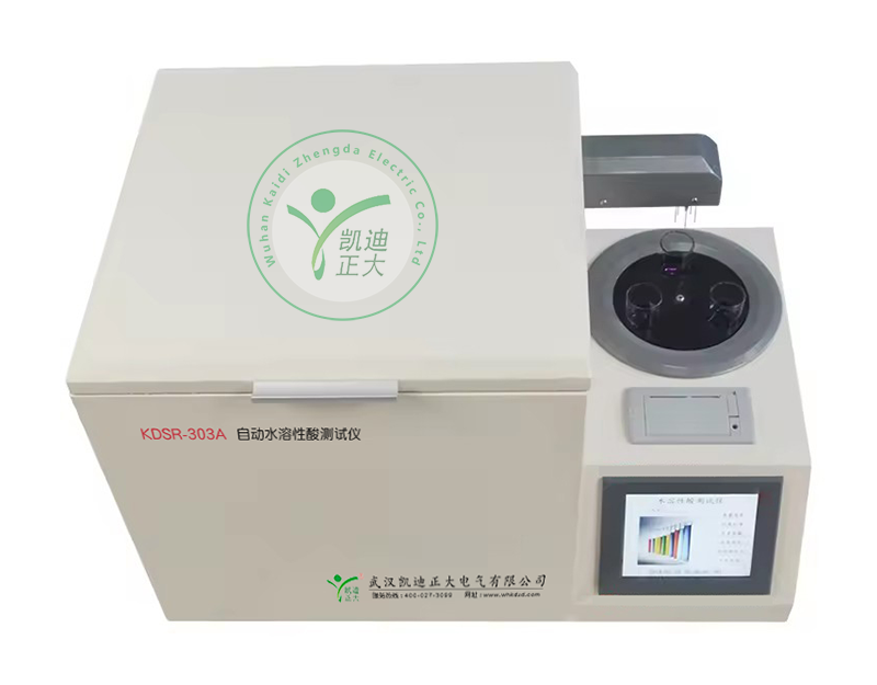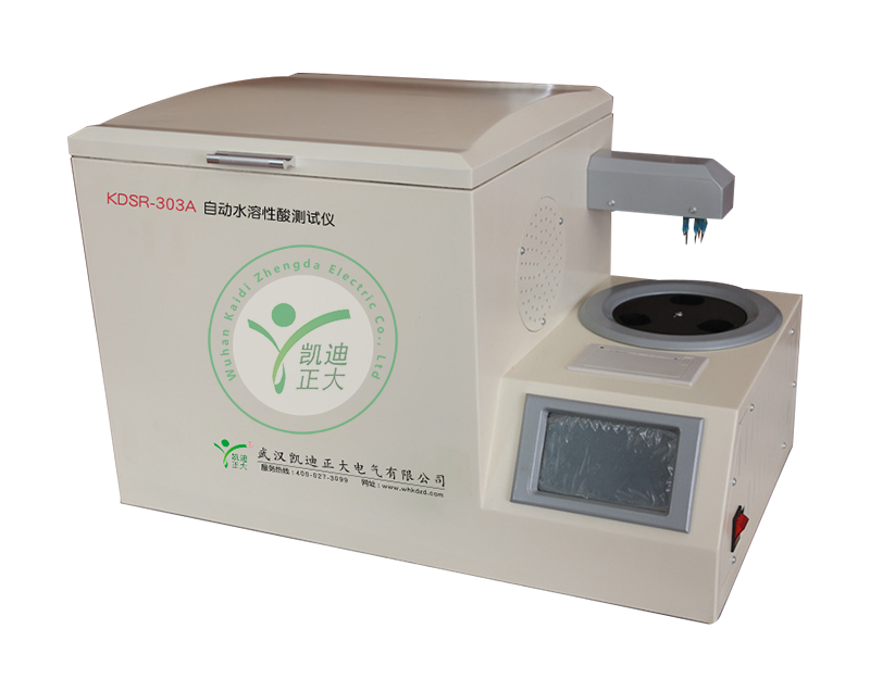 我公司生产的KDSR-303A型自动水溶性酸测试仪(比色法)是根据《GB/T7598-2008运行中变压器油水溶性酸测定法》及相关标准设计制造。采用大屏幕彩色液晶显示器,利用微处理器控制,可以根据用户的设定条件自动完成加热、恒温、振荡、取样、测试、清洗、打印等功能,可以一次性测量1-3个样品,缩短了用户的测试时间,提高了工作效率,减轻了工作人员的劳动强度;并支持无线传输功能。