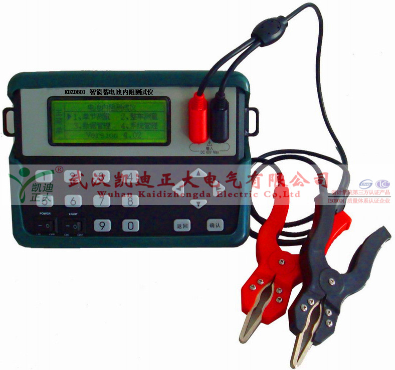 国际上,内阻的测试已被应用于电池的日常维护而取代过去的电压检查法。因为内阻是反映电池内部的参数,  电池的内阻是准确而快速的判断电池健康状况的重要参数。 (参阅IEEE std 1188—1996)。 关于内阻与容量的结论是:当电池的内阻大于初始值(基值) 的25%时,电池将无法通过容量的测试。当电池的内阻大于初始值 (基值) 的2倍时,电池的容量将在其额定容量的80%以下。 KDZD801蓄电池内阻测试仪是快速准确测量电池运行状态参数的数字存储式多功能便携式测试仪器。该仪表通过在线测试,能显示并记录一节或多组电池电压、内阻、阻抗等电池重要参数,有效地判别电池优良状况,并可与计算机及专用电池数据分析软件一起构成智能测试设备,进一步跟踪电池的衰变趋势,并提前报警,以利于工程技术及管理人员酌情处理。