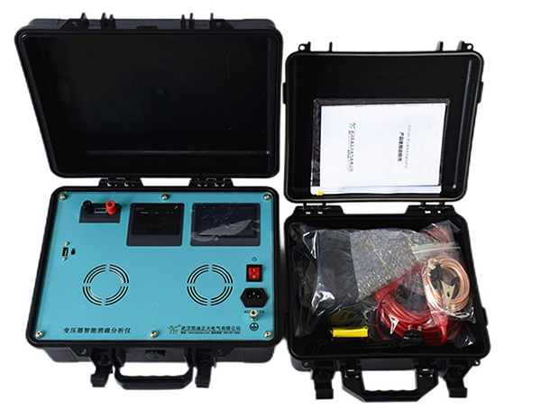 大容量变压器在正常运行及试验时,铁芯中会产生剩磁。当变压器容量较大时, 剩磁的危害也会相应增大。 剩磁可能会导致继电保护装置误动, 使变压器投运失败; 同时剩磁还可能使试验结果异常, 也会影响送电后的电能质量。 所以,当变压器运行中由剩磁产生异常现象或故障时, 应加以重视。为此,我公司研发了变压器消磁系列产品。我公司是国内较早研发生产消磁仪器的厂家,积累了大量的实践经验。