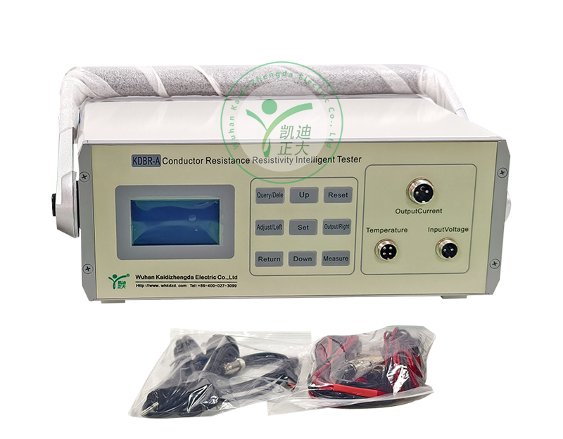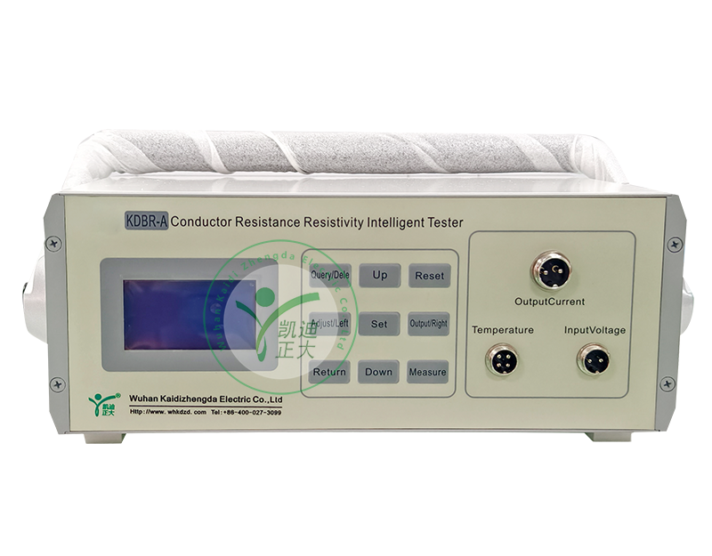 KDBR-A型电线电缆导体电阻材料电阻率智能测试仪主要是为测量电线电缆导体直流电阻、铜杆铝杆、铜排铝排等导体材料体积电阻率设计制作的。测试仪可以自动测量换算导体电阻并根据环境温度换算到20℃、自动测量体积电阻率并换算到20℃。测量电线电缆导体直流电阻时可根据标准要求自动判定是否合并计算电性能截面积。导体电阻测量换算依据GB/T3048.4-2008、GB/T3956-2008(IEC60228:2004),体积电阻率的测量换算依据GB3048.2-2007(IEC60468:1974)、GB/T5585.1.2-2018、GB/T3952-2008、GB/T3953-2009、GB/T3954-2008、GB/T3955-2009。